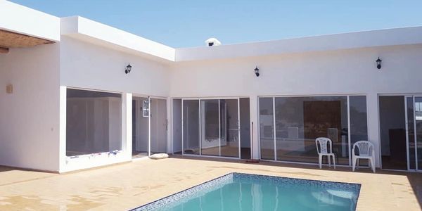 Villa under construction for sale with an area of 3,500 square meters, 17 km from Essaouira. It has a well and an electricity meter. A house with four rooms and bathrooms, with an area of 150 square meters.