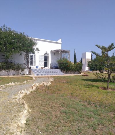 Réf:CPX2150722S. Une aubaine à 320 000 Eu. A seulement 12 minutes de la ville d'Essaouira et 8 minutes de Ghazoua et des commerces. Moins d'un kilomètre de piste de la route principale Hararta. C'est une propriété unique avec deux parcelles attenantes. La principale avec une maison de 2/3 chambres est de 3 500 m2 de terrain et la maison de 160 m2, avec de nombreux parkings ombragés et un château d'eau. La maison peut facilement être agrandie pour créer un deuxième étage. Il y a deux chambres, un espace de rangement et deux salles de bains avec toilettes ainsi qu'une chambre/bureau. L'entrée est magnifique, menant à une cour intérieure lumineuse. La cuisine est entièrement équipée et spacieuse. Il y a 2 jolies terrasses extérieures ombragées menant de la cuisine et donnant sur le jardin et la superbe piscine de 8x4,50 mètres.