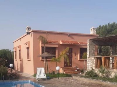 . This property is for rent in the countryside close to Essaouira town for just 10,000DH per month. The property has three bedrooms two bathrooms and two salons with one open fireplace. There is also a fitted kitchen, ample outside terrace space around the pool for lounging and mature gardens. Réf;CPN060423R . Cette propriété est à louer à la campagne près de la ville d'Essaouira pour seulement 10 000 DH par mois. La propriété dispose de trois chambres, deux salles de bains et deux salons avec une cheminée à foyer ouvert. Il y a aussi une cuisine équipée, une grande terrasse extérieure autour de la piscine pour se prélasser et des jardins matures.
